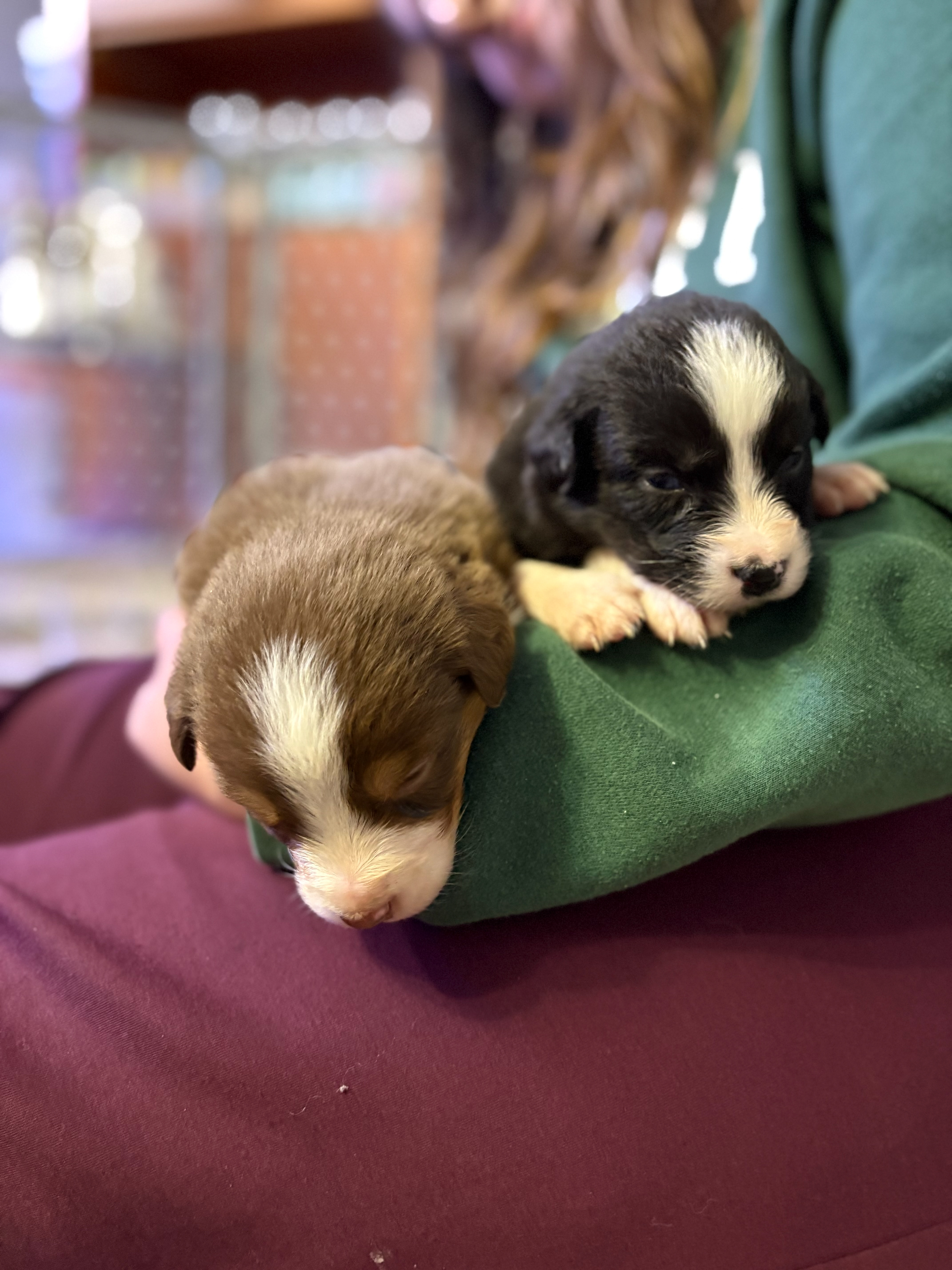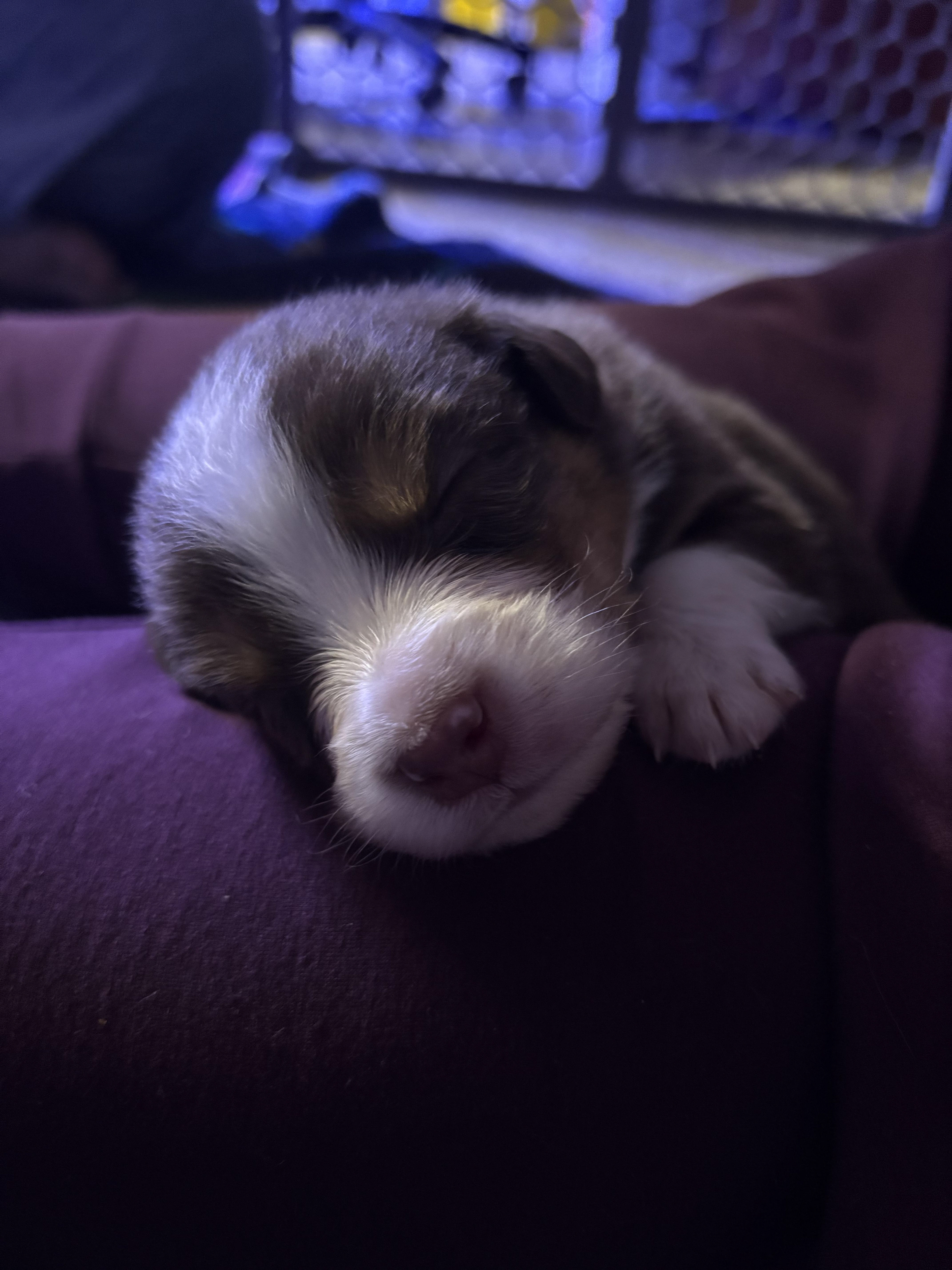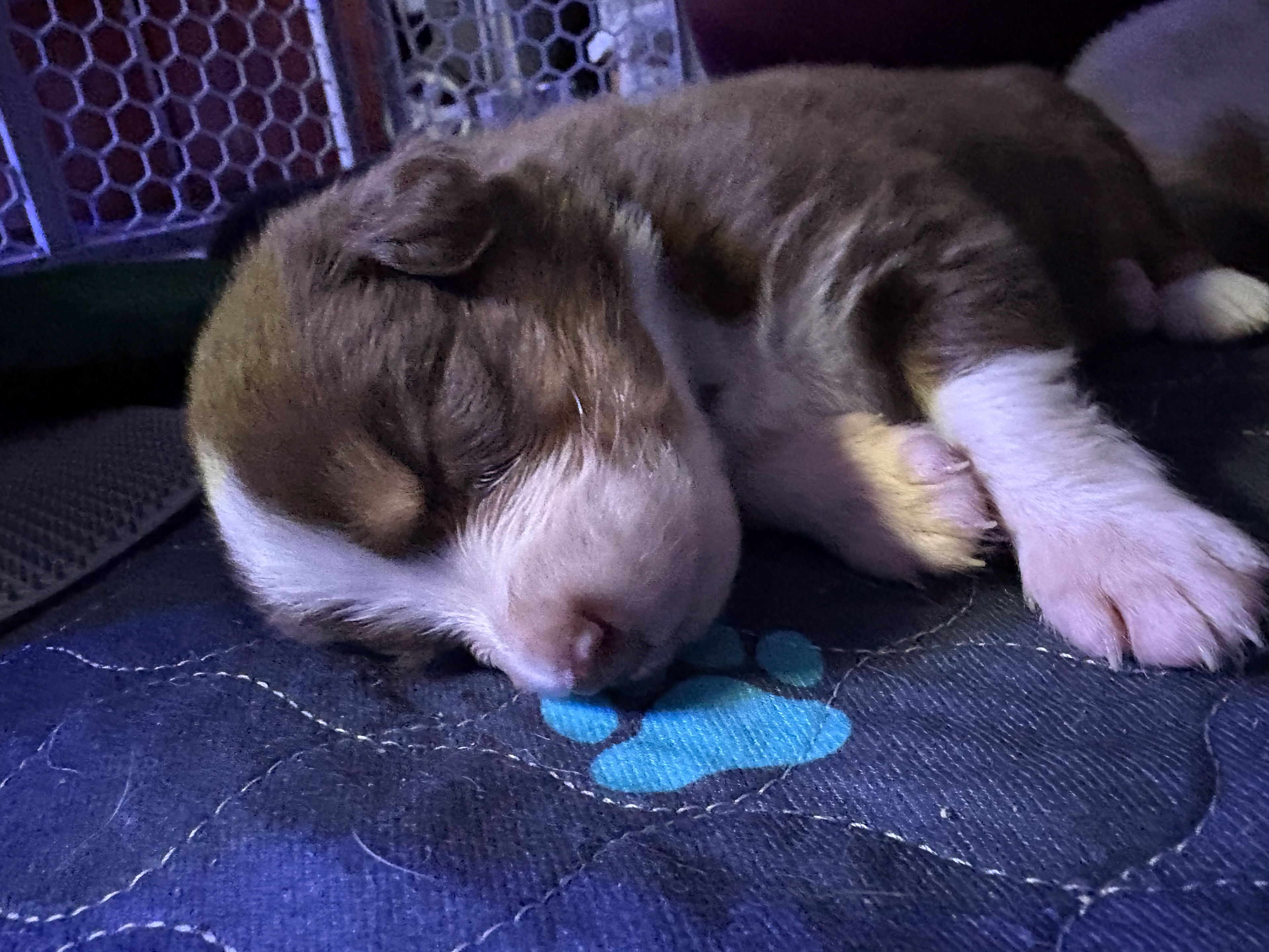 Meet our male red tricolor! He is very sweet and one of our more laid-back puppies.