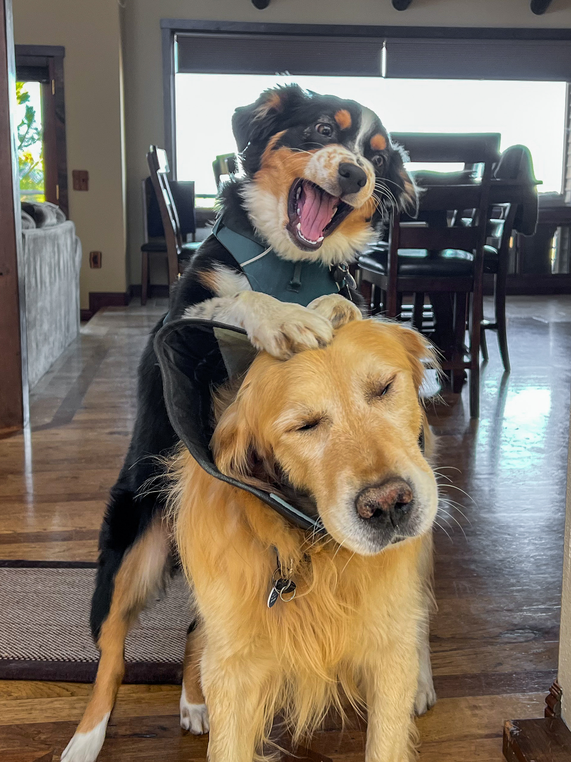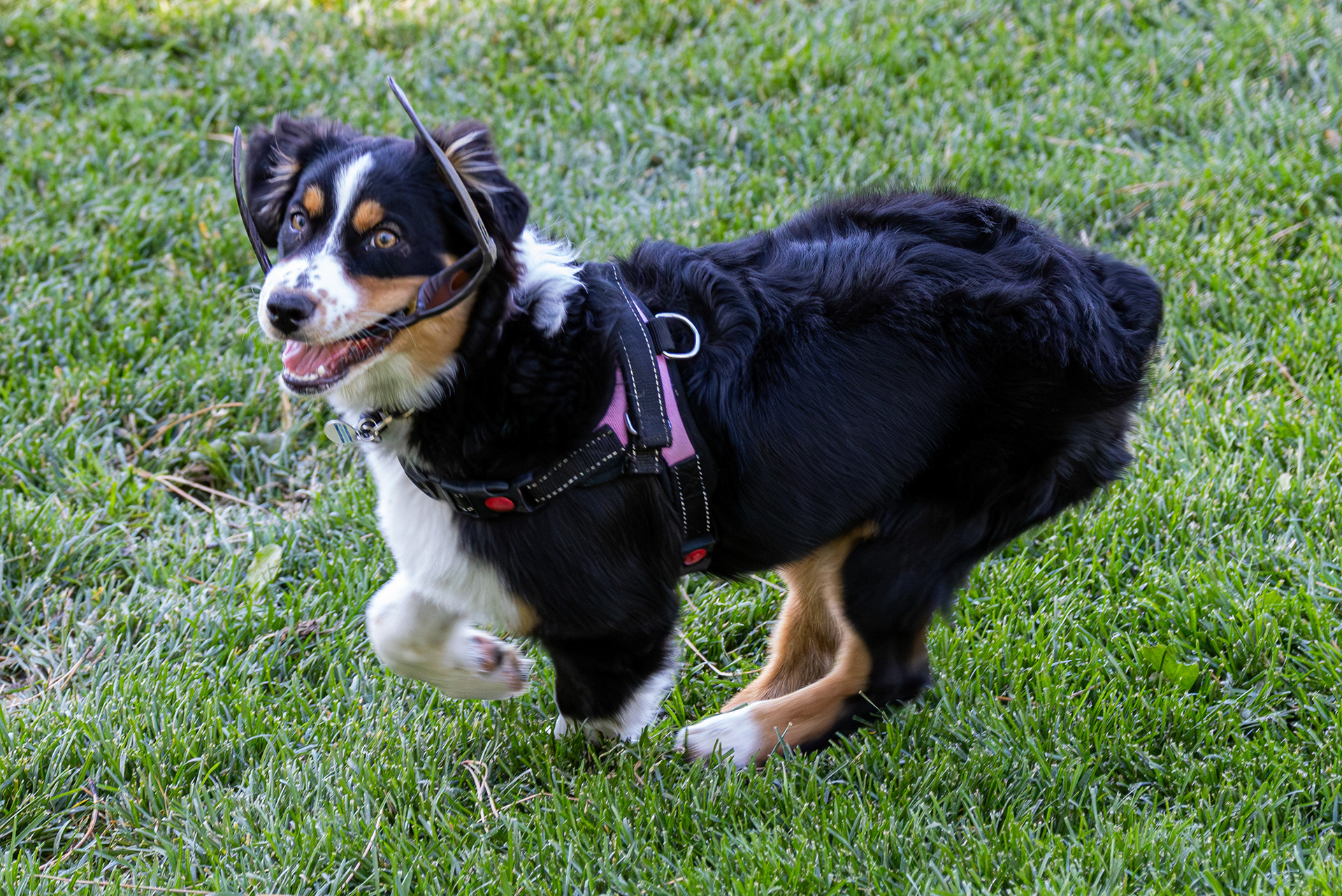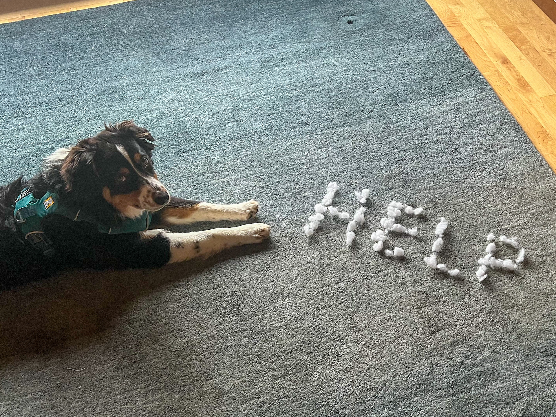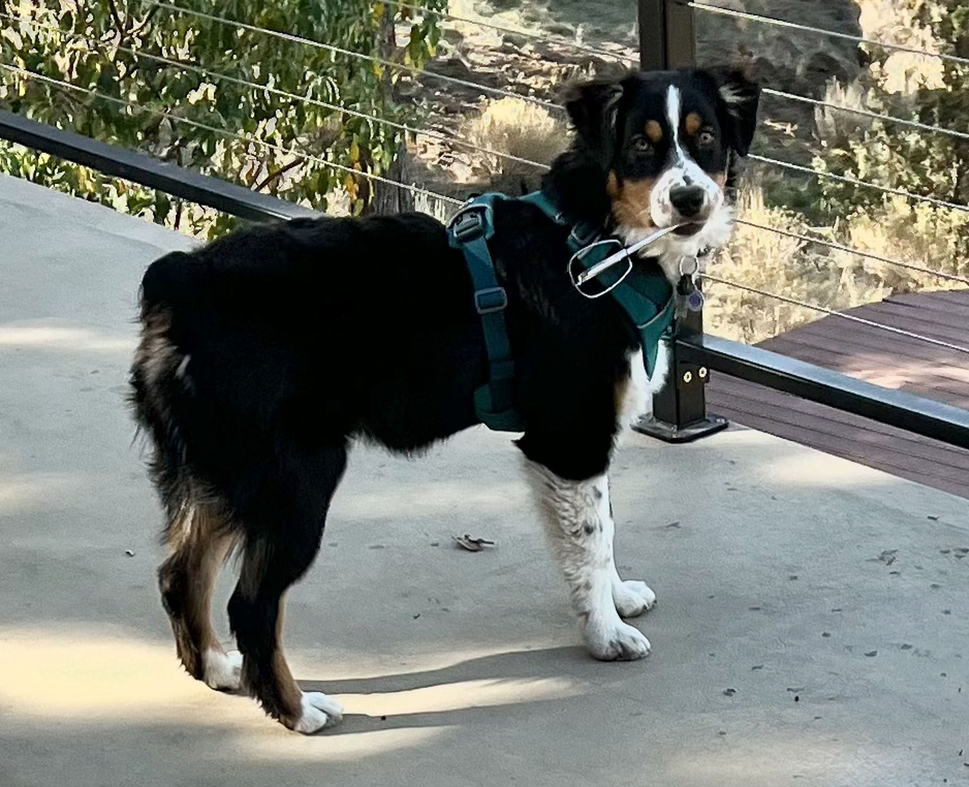 Our 4-yr old Aussie is currently a dream. However, between the ages of 6 months and 2 years, she required consistent attention. She was high energy and always up for a game of chase, even if we had better things to do. One way to get you to play chase is to take things. In our observation, this strategy is common in Aussies and is very effective. I cannot stress this enough: Aussies like to TAKE things. Here you see Ripley with a beater head. Apparently, we had planned to bake. In another photo, you see Ripley with expensive sunglasses. She especially liked all kinds of glasses. Apple Air Pods were also a favorite -- soft on the outside and crunchy on the inside! But she also ran with scissors and once jumped in bed with me carrying a giant butcher knife. So -- make sure you are ready!